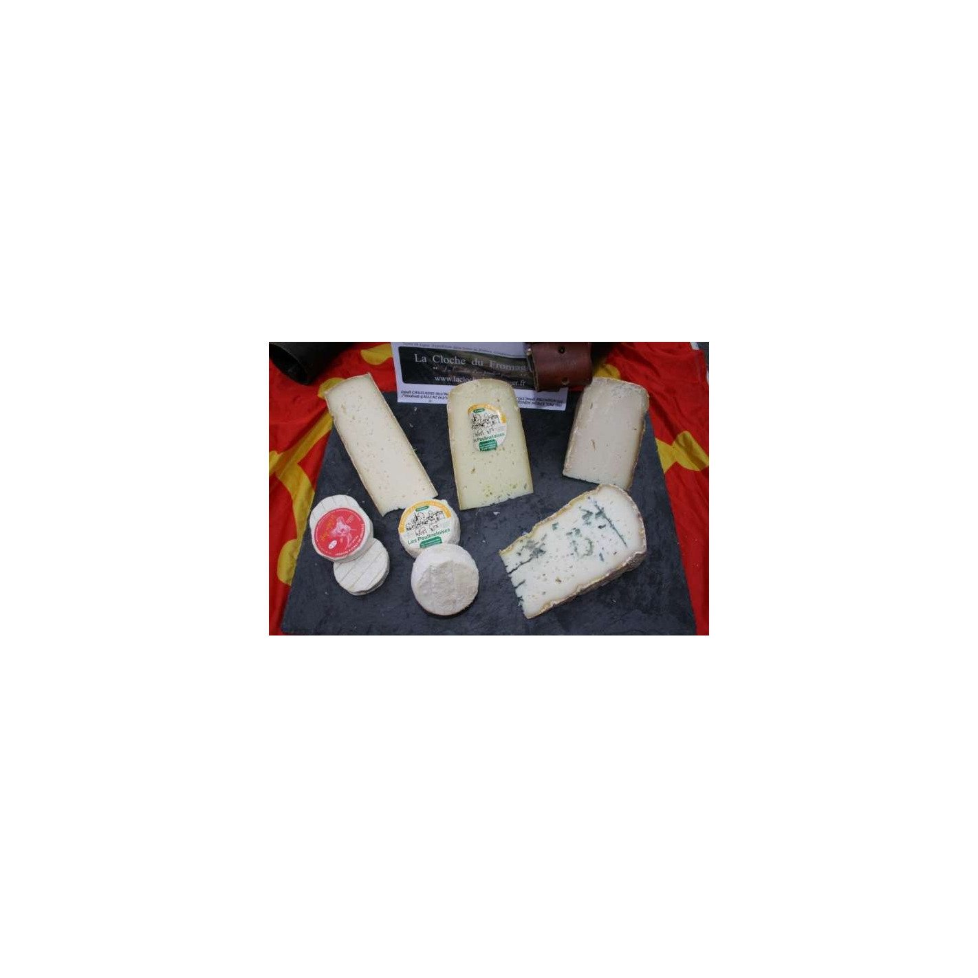Rocamadour ×3 • Bleu de Brebis 250 g • Crottin Fermier de Chèvre ×1 • Crottin Fermier de Brebis ×1 • Lacaune cru 250 g • Ossau-Iraty 250 g • Tome de Chèvre Grotte Crémeuse 250 g